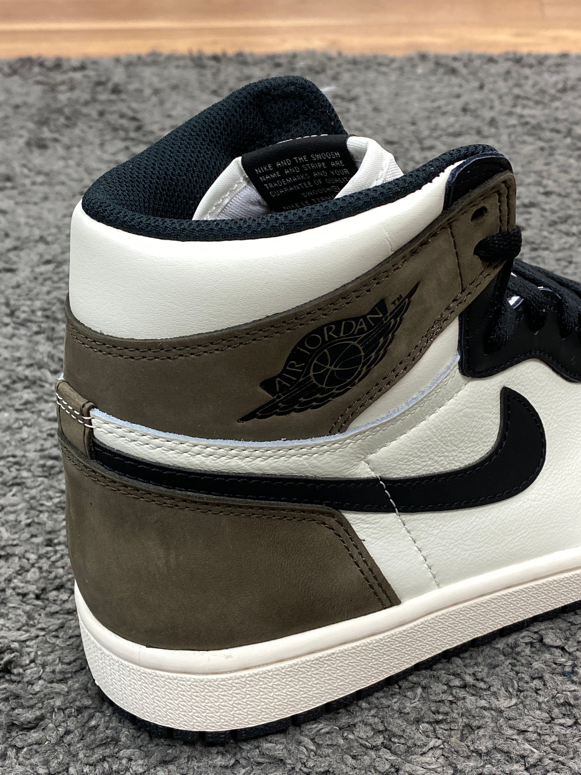 Seen here in a clean Dark Mocha colourway that’s heavily reminiscent of Travis Scott's highly in-demand collaboration, the Air Jordan 1 looks better than ever crafted from genuine nubuck leather and premium brushed suede. Nike’s iconic Swoosh logo runs neatly down each side, while Nike Air branding and the Wings logo remain at the tongue and collar respectively. The brown and black tones are neatly balanced with white panels for a well-considered colourway. The toe box is perforated in classic Michael Jordan fashion, while black leather accents give off a black toe vibe for a classic look.
