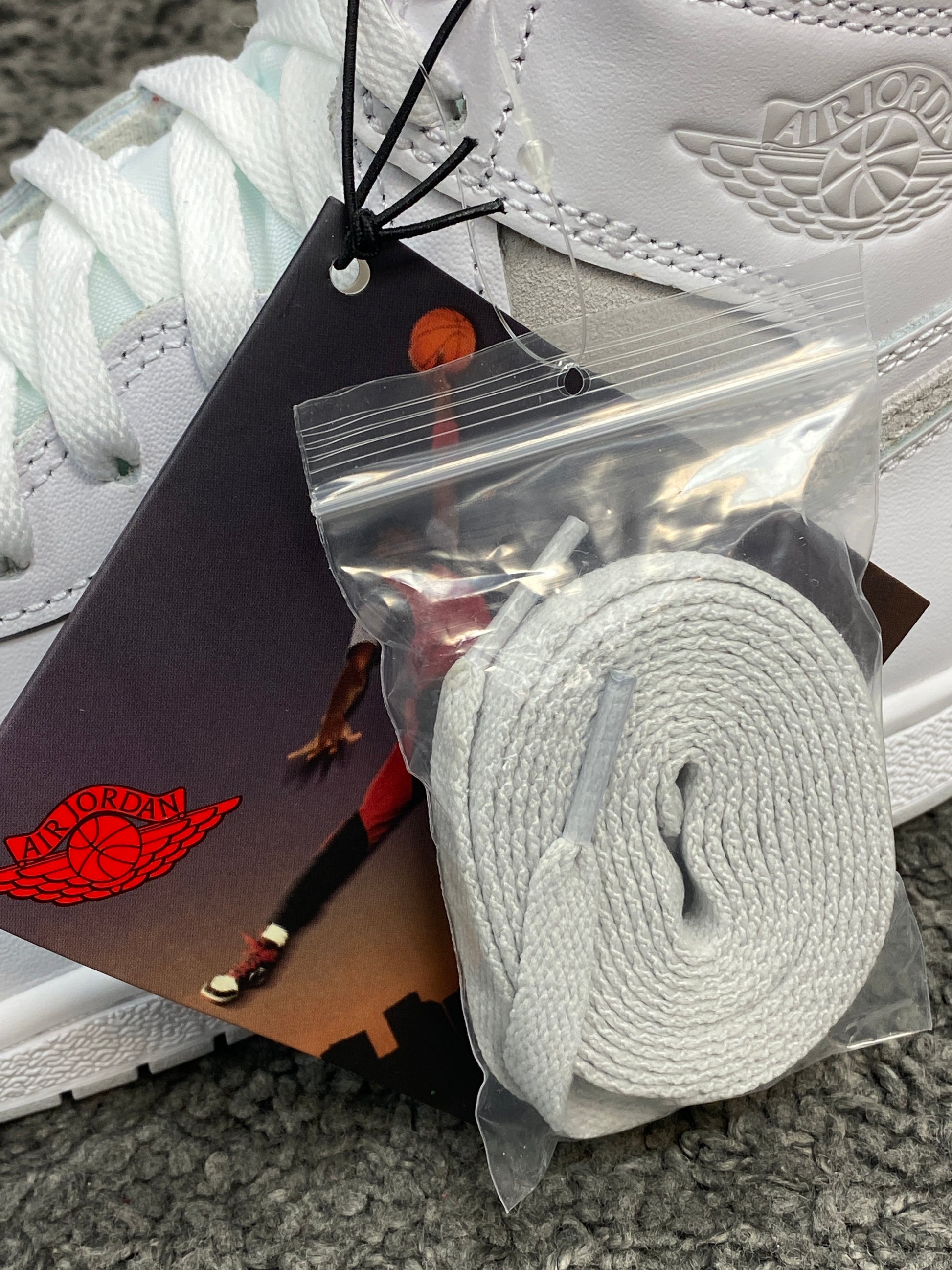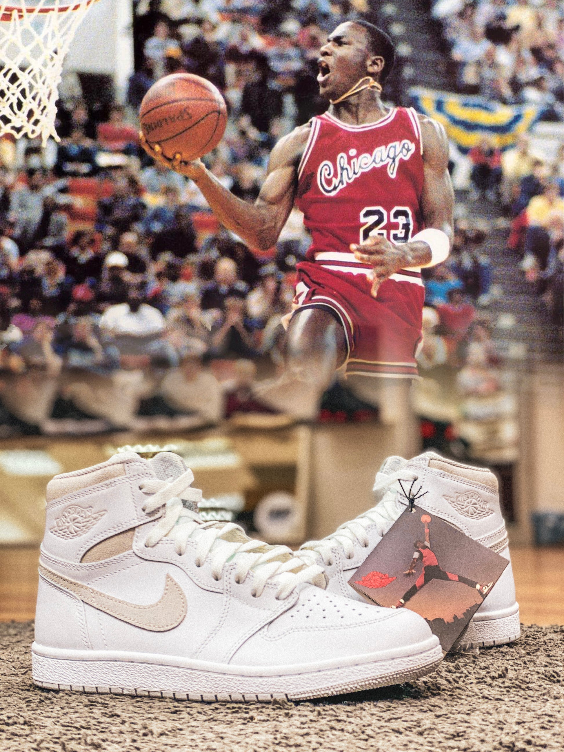 The forthcoming AJ1 High boasts an ultra-clean white leather upper, resulting in a basketball sneaker that isn't designed only to look good on the court but also the streets. What made this Air Jordan 1 colour arrangement so famous is the Neutral Gray accents coating the Swooshes across the lateral and medial side panels.