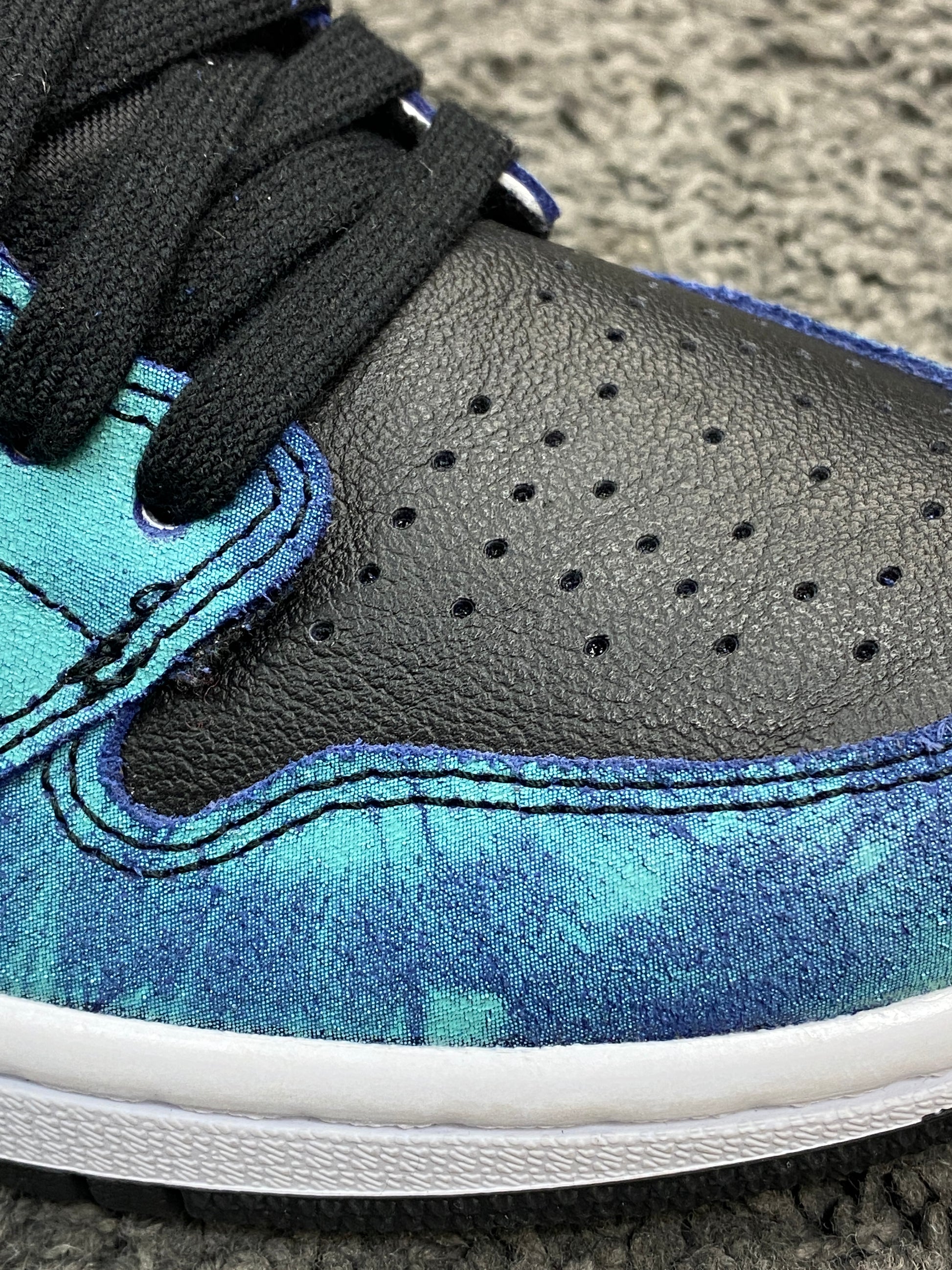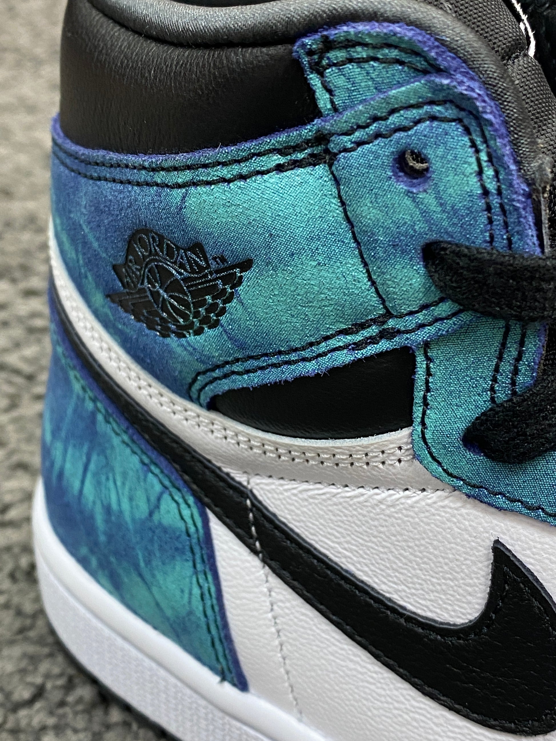 Nike and Jordan Brand have dressed the model in a refreshing tie-dye first look, and it’s one that will definitely turn a few heads on the street! The uppers look set to be crafted from premium quality leather, with the classic colour-blocking showcasing blue tie-dye, black and white leather panels. Nike’s Swoosh logos is as present as ever, while additional branding remains at the tongue and ankle collar.