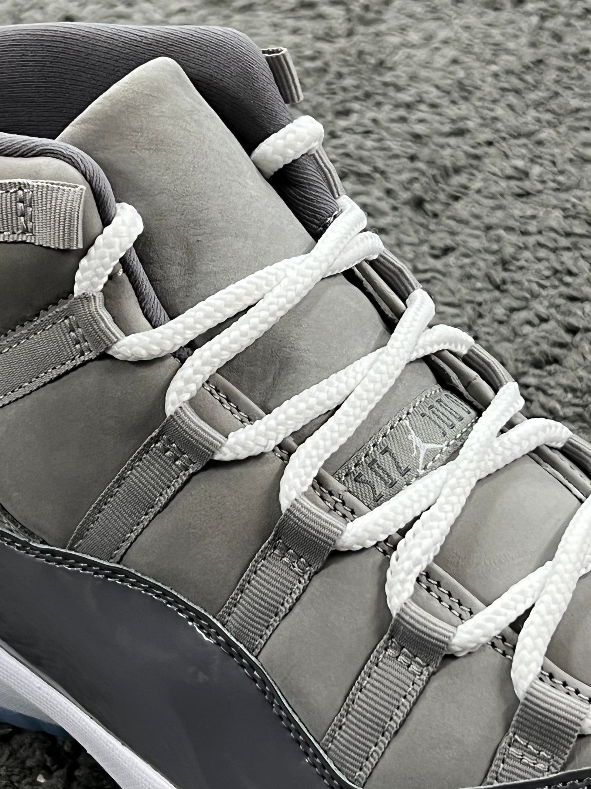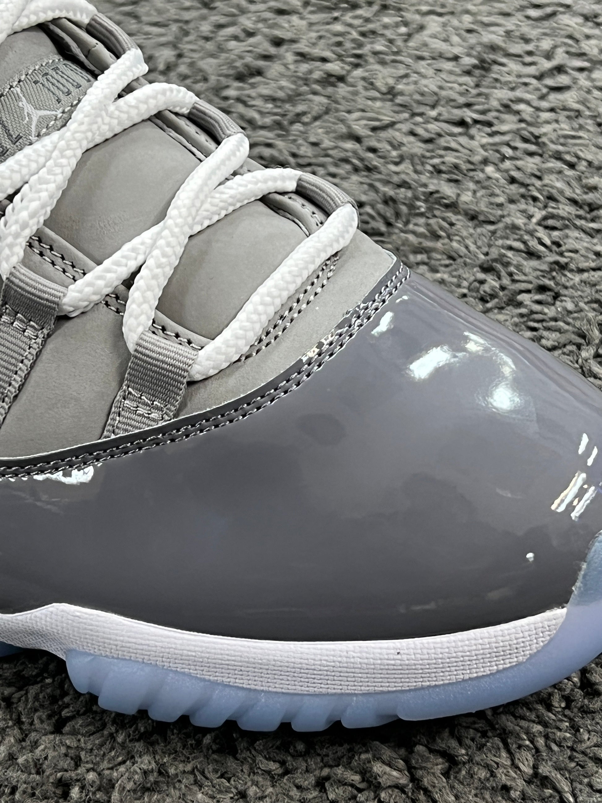 This latest AJ11 variant works atop a classic mid-cut profile, predominantly dressed up in two shades of grey. The nubuck leather-constructed upper indulges in a supple tone, while the iconic patent leather elements that run from the toes to the sides opt for a darker tone. White accents complement the colour arrangement beautifully in the form of MJ's Jumpman insignia embroidered on the lateral ankle, paired up with a set of laces and midsole in the same fashion, rounded off with a translucent icy blue outsole for that timeless Jordan 11 aesthetic.