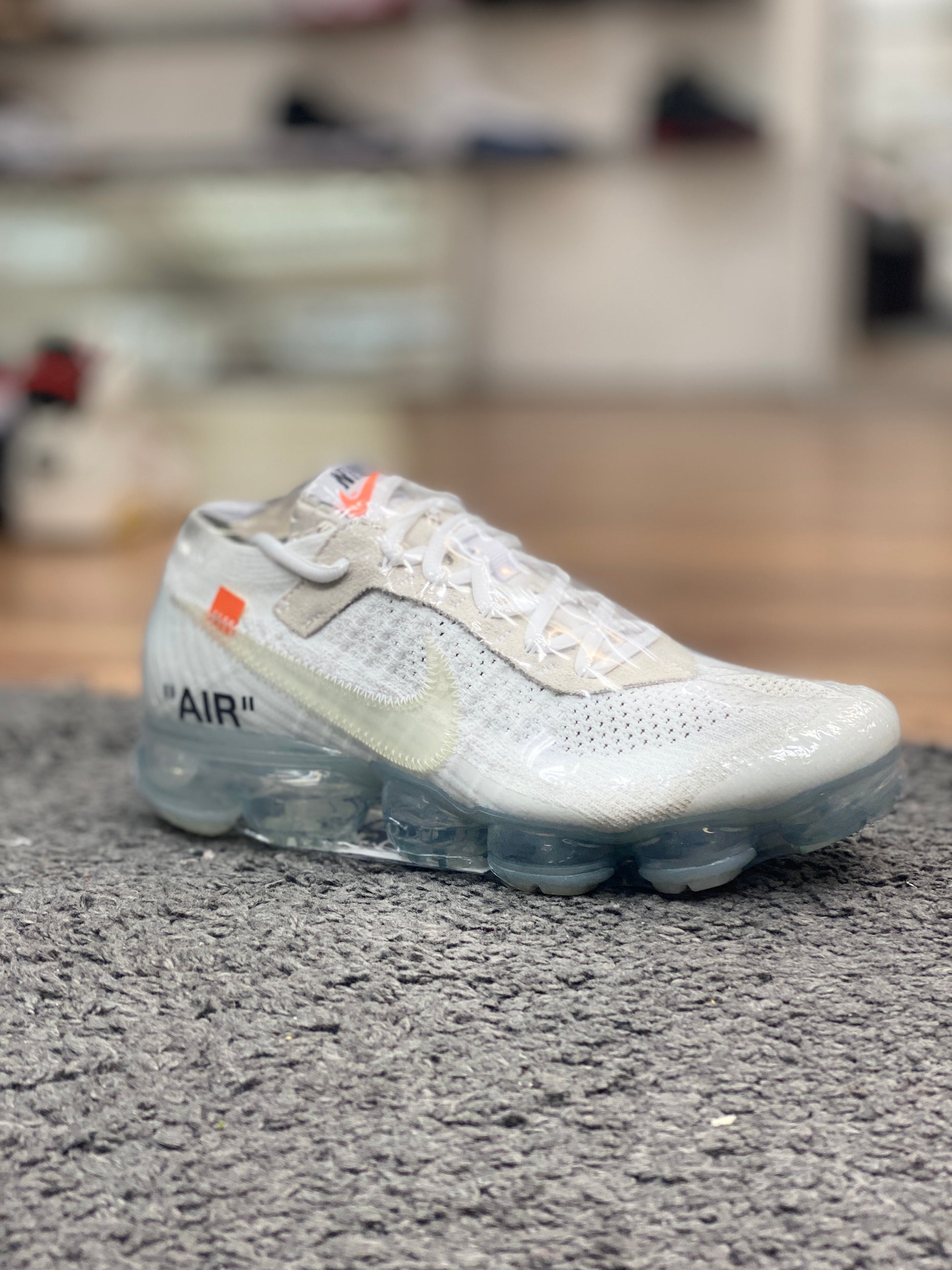 A crystal clear bubble sits underfoot on the Off-White Vapormax ‘White’. This icy contrast manages to make the design even more appealing. Finally, it’s the deconstructed tongue which stays true to the original theme imparted on “The Ten”.
