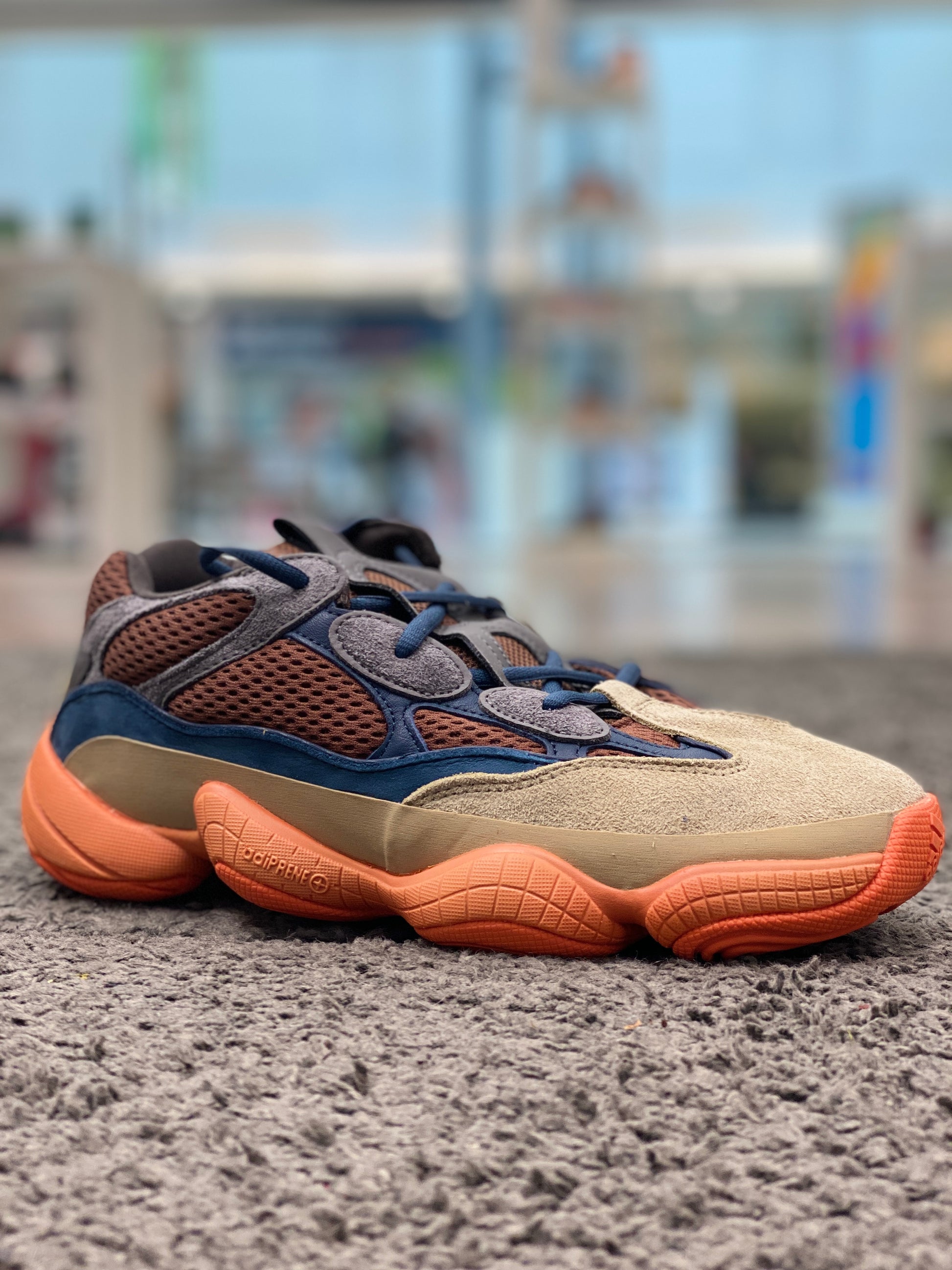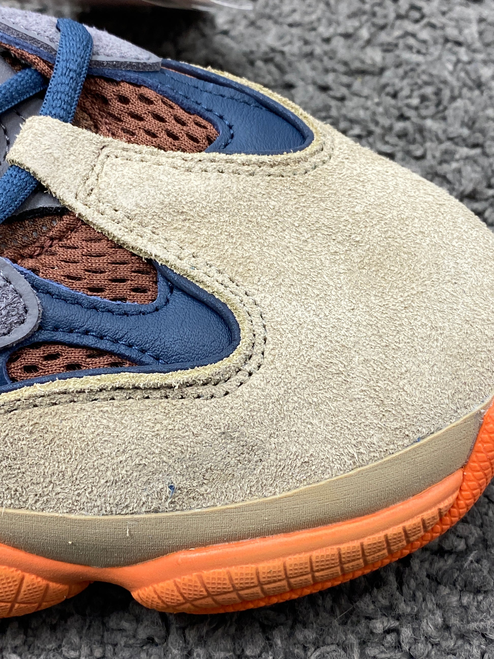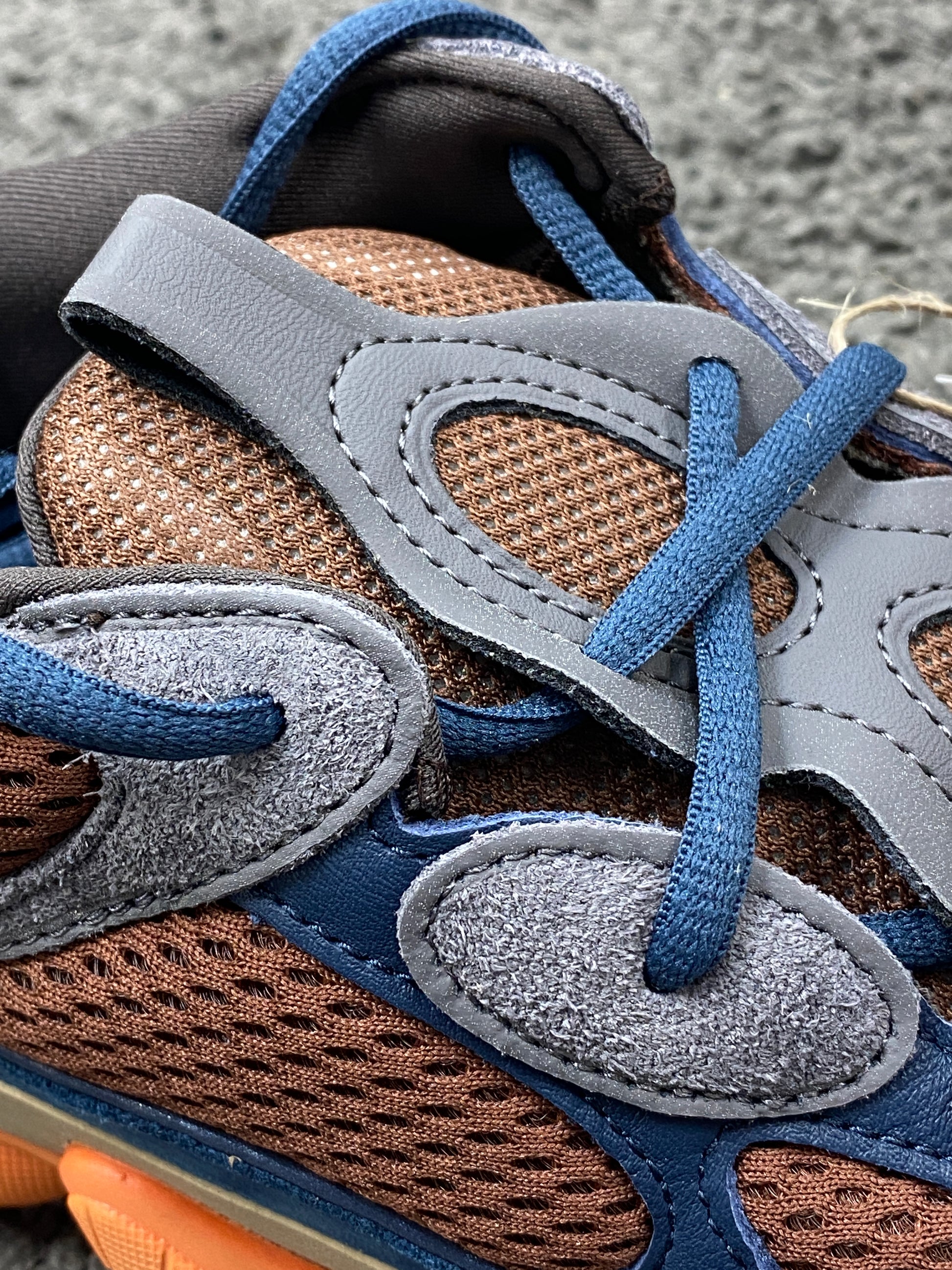 Working on an earthy brown-hued mesh base, navy blue leather panels make their way across the upper while buttery suede pods form the lacing system for an extra premium vibe. The look is further elevated with a dark blue hue coating the laces and other insignificant panels. A soft beige hue falls on the mudguard then continued on the toebox and heel, vibrantly contrasted with a bright orange midsole. Of course, co-branding details are present as ever on the insoles. If you've never had a pair of Yeezys before, then these should be a no-brainer of a cop. Not only does it look stylish, but optimal comfort and cushioning is present all day long on this model.